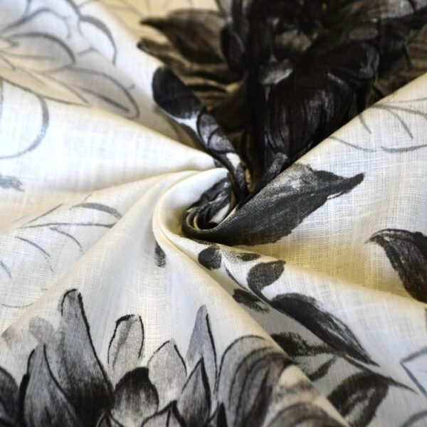 A mono-chrome design of dahlia like flowers, which gives this fabric a sophisticated look.